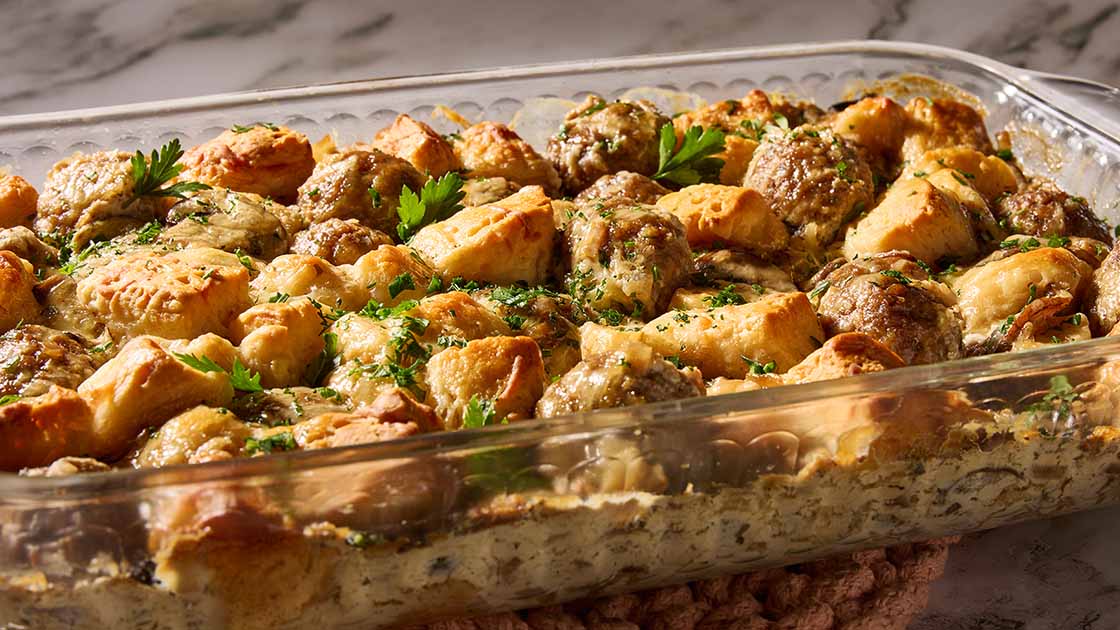 Meatball Stroganoff Bubble-Up Bake This dish is comforting, rich, and hearty, with biscuits baked right in. It’s one of our favorite casserole for cozy nights! VIEW THIS WEEK’S RECIPE Don’t miss a meal! Afraid you might have missed your family’s next favorite dinner? Check out the Doughboy’s previous Dinner Drops.